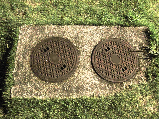 敷地内に長方形のコンクリート製の設備があり、マンホールのふたが2つ並んでいる場合は、浄化槽が設置されています。