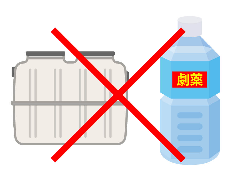 水を入れずに放置すると、外側からの土圧によって槽が変形したり、内部の仕切り板が破損するおそれがあるため注意が必要です。