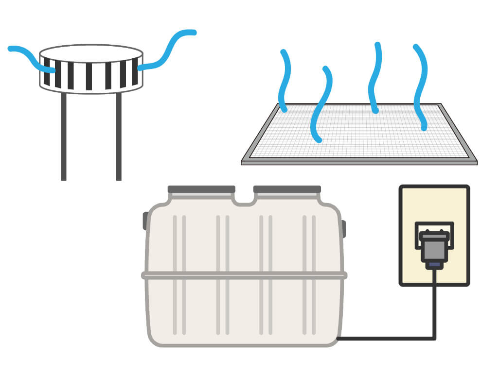 ブロワが停止すると、浄化槽内に空気が供給されず、微生物が酸素不足で死滅してしまいます。その結果、汚水の分解が行えなくなり、槽内の腐敗や悪臭の発生を招くおそれがあります。